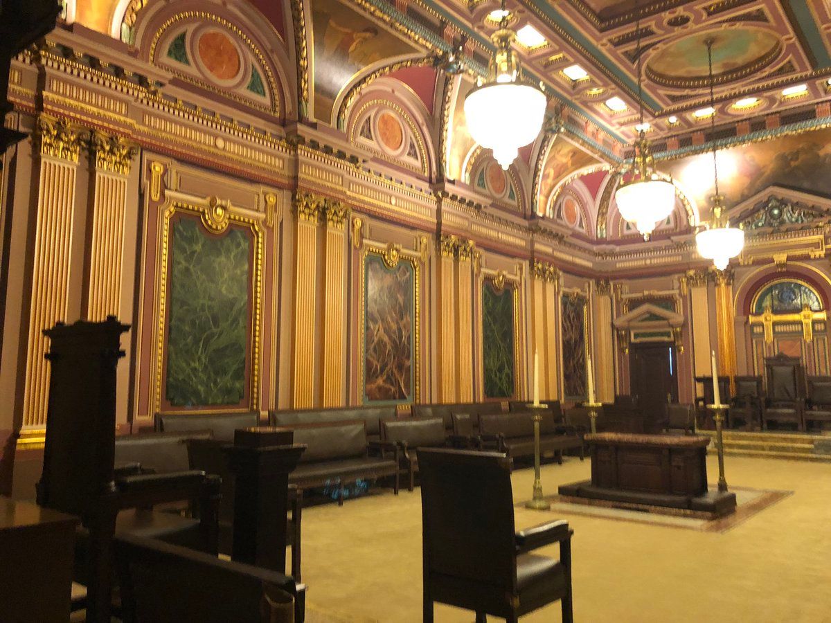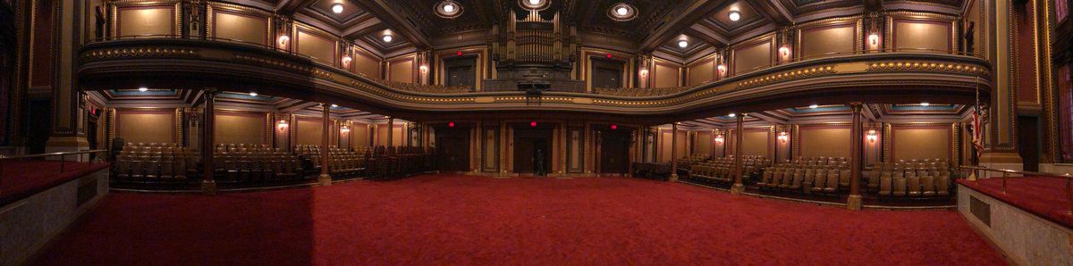 My escort turned on the lights while I was in the middle of taking this sweet pano from the podium of this ballroom/voting chambers