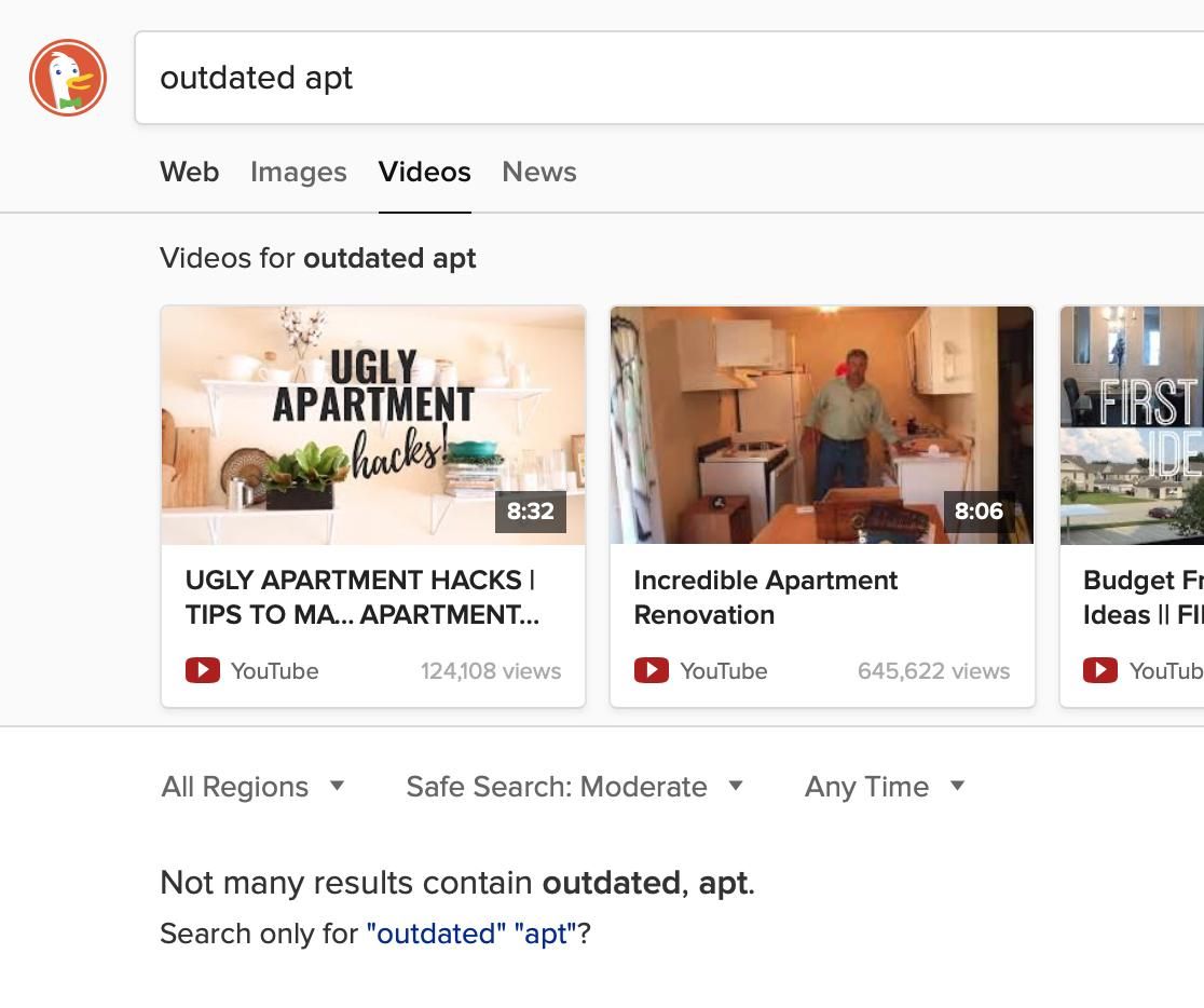 I’d love to drop google altogether but DuckDuckGo is a *really* bad search engine. Like, at a very basic level: if I put a string in quotes, don’t show me results that don’t have that string. I have a million more complaints but that one is the biggest.