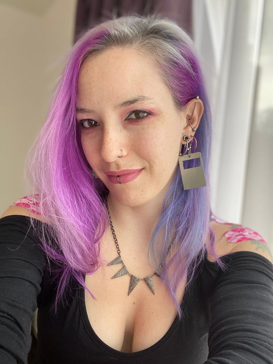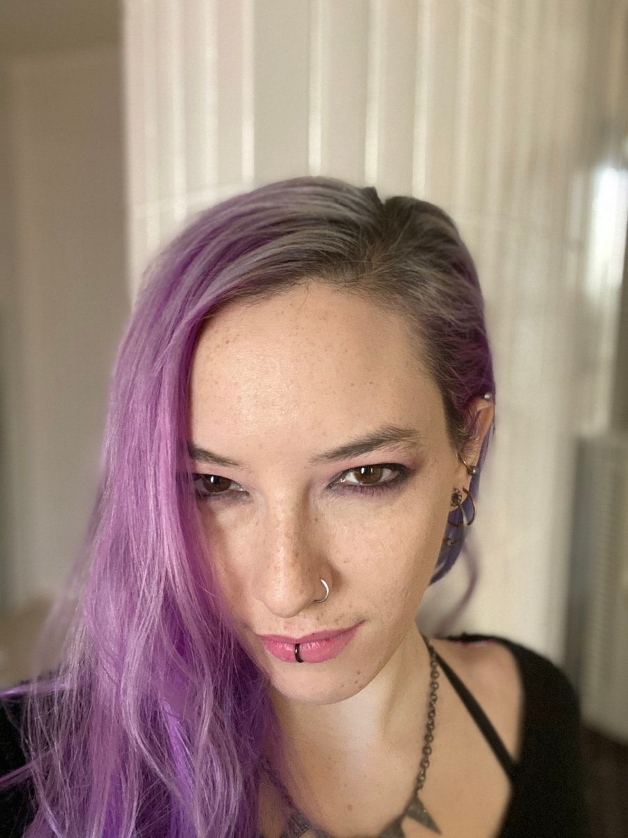 It’s mostly just well-lit, faded purple. Though there’s this great denim streak along my (typical) part that just looks phenomenal and has since it was fresh. I regret I have no photos of it.