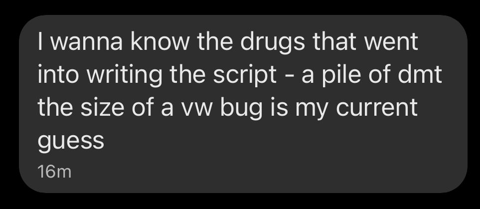 Oh my god I wish I could invite @hunter_owens over to watch this. Also I want an oral history of how tf this movie happened.