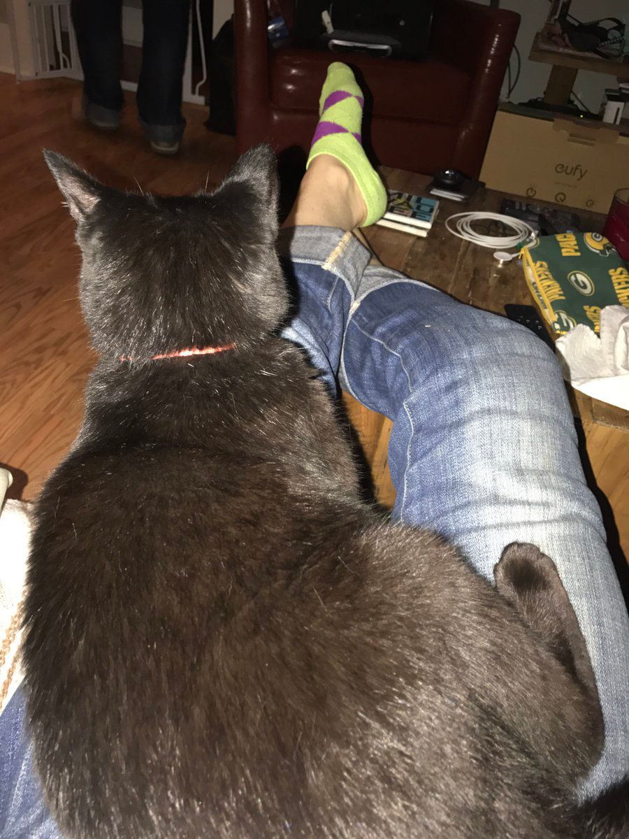 When the puppy is asleep, the familiar will take her rightful place on my lap.