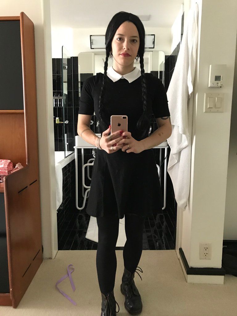It is exceedingly hard to keep a straight, morose face when everyone is giggling at my Wednesday Addams costume.