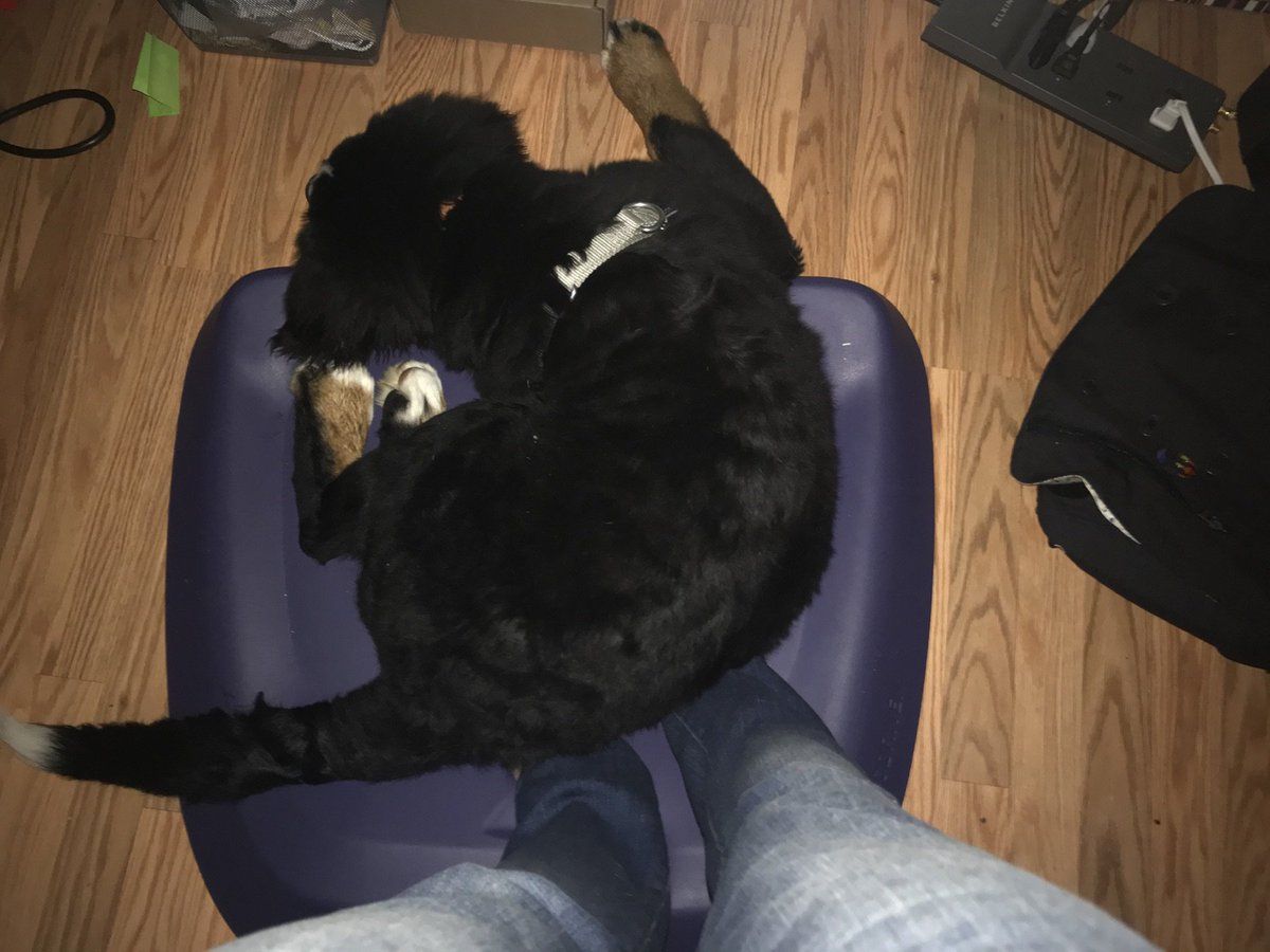 he’s just laying on the floor, whining, bc he’s bored and wants us to be done with work.